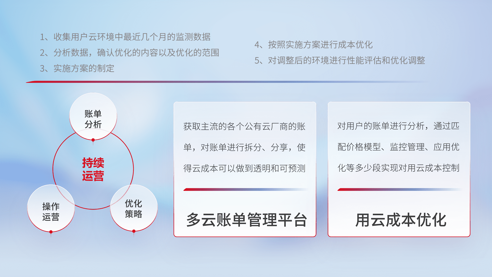 运用智能化工具分析云资源,,提供日常费用可视化工具,,,自动账单拆分,,,,成本优化云上费用,,,,降本增效。。
